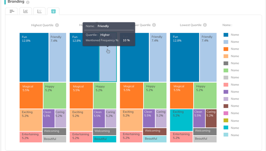 Interaction designs enable users to breakdown the tags and deep dive into the experiences. LUCI (Worthix AI) enables the system to recognize the keyword from open question results and group them into tags (experiences).